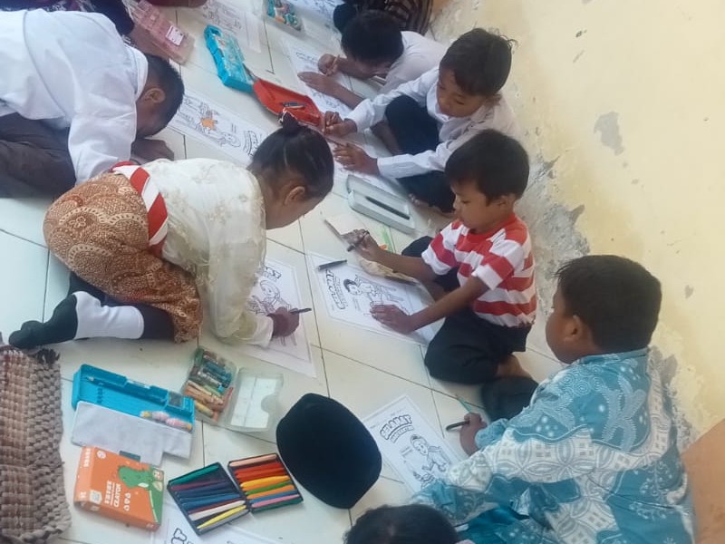 Melalui aktivitas mewarnai, anak-anak diperkenalkan dengan sejarah sosok tangguh Raden Ajeng (RA) Kartini.